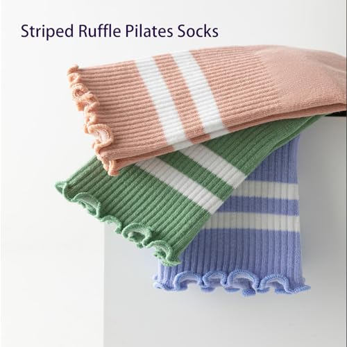 3 Pairs Pilates Socks with Grips Non-slip Yoga Crew Sock Ruffle Striped Sock for Gym Hospital Sticky Slipper Socks 7