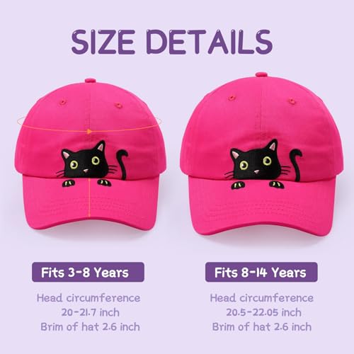 • 【Cute Embroidered Cat Hat】:Cute embroidered black cat pattern make your girl look cute and beautiful,she would love to wear this hat,which are easy to pair with a variety of clothes and styles,Add some magic to your child’s wardrobe with this adorable baseball cap,and embroidered design will not fade,Fulfilling the dreams of children becoming cat lovers; Your kid will not want to take it off !