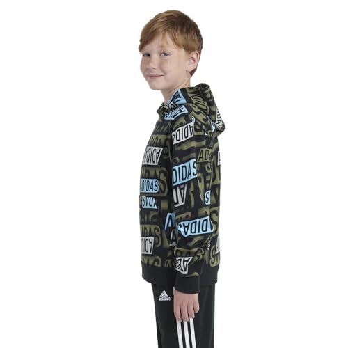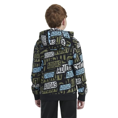 adidas boys Active Sport Athletic Pullover Hooded Sweatshirt, Black with Aqua Brand, X-Large 1