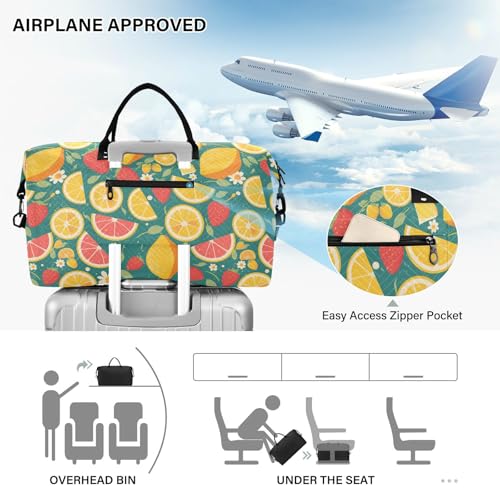 Summer Fresh Fruits Blue Decorative Carry On Weekend Bag Travel Tote Gym Bag with Adjustable Strap for Trip Foldable Bolsa de Mano para ropa de 6