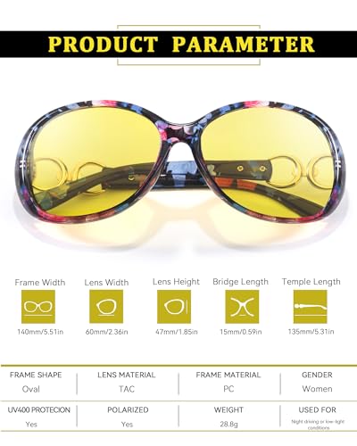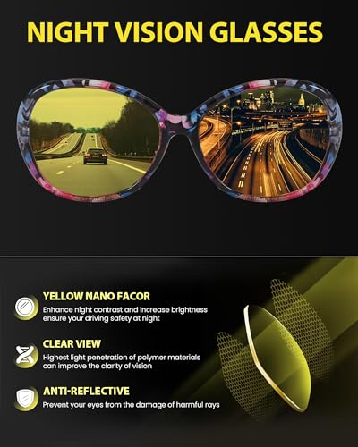 TJUTR Women's Night Vision Glasses, Polarized Yellow Lens for Night Driving, Anti Glare & Enhance Vision at Nighttime 7