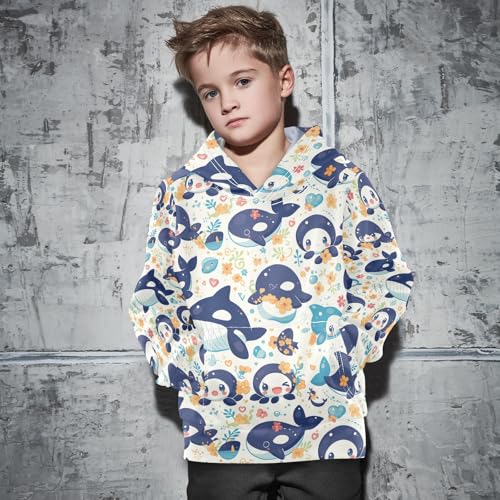 Killer Whale on Blue Boys And Girls Sweatshirts Fashion Pullover Top Streetwear Kangaroo Pocket 5